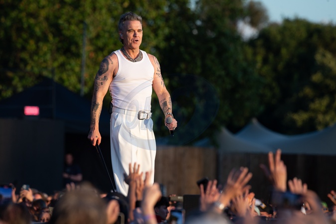 English singer-songwriter Robbie Williams headlines BST Hyde Park Festival in Hyde Park in London, England, UK on Saturday 6 July 2024., Credit:Justin Ng / Avalon