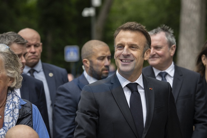 Emmanuel Macron, Prezydent Republiki Francuskiej i Pierwsza Dama Brigitte Macron, opuszczają lokal wyborczy podczas drugiej tury wyborów legislacyjnych w Le Touquet