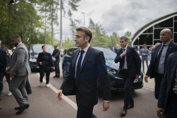 Emmanuel Macron, Prezydent Republiki Francuskiej i Pierwsza Dama Brigitte Macron, opuszczają lokal wyborczy podczas drugiej tury wyborów legislacyjnych w Le Touquet