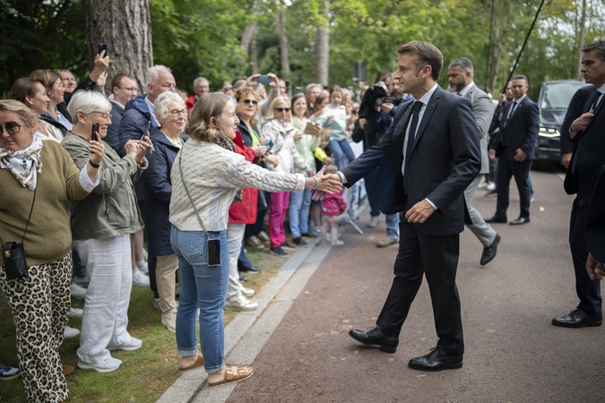 Emmanuel Macron, Prezydent Republiki Francuskiej i Pierwsza Dama Brigitte Macron, opuszczają lokal wyborczy podczas drugiej tury wyborów legislacyjnych w Le Touquet