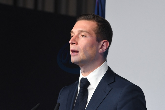 Jordan Bardella lors de la soirée électorale du Rassemblement National lors du second tour des élections législatives au Parc Floral à Paris