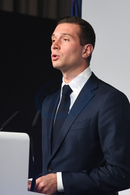 Jordan Bardella lors de la soirée électorale du Rassemblement National lors du second tour des élections législatives au Parc Floral à Paris