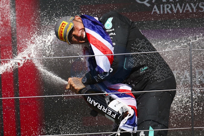 HAMILTON Lewis (gbr), Mercedes AMG F1 Team W15, portrait podium celebration during the Formula 1 Qatar Airways British Grand Prix 2024, 12th round of the 2024 Formula One World Championship from July 5 to 7, 2024 on the Silverstone Circuit, in Silverstone, United Kingdom -