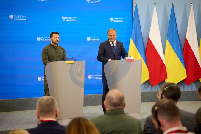 Visite de travail du président ukrainien Volodymyr Zelensky avec le premier ministre de la Pologne Donald Tusk à Varsovie, République de Pologne, le 8 juillet 2024. © Ukraine Presidency via Bestimage Working Visit of the President of Ukraine to the Republic of Poland, on July 8, 2024.