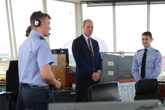HOLYHEAD, UNITED KINGDOM - JULY 09: Prince William, Prince of Wales talks to base personnel inside the Air Traffic Control Tower during an official visit at RAF Valley on July 09, 2024 in Holyhead, United Kingdom. The Price of Wales spent three years stationed at RAF Valley whilst serving as an RAF Search and Rescue pilot between 2010 and 2013., Credit:Chris Jackson / Avalon