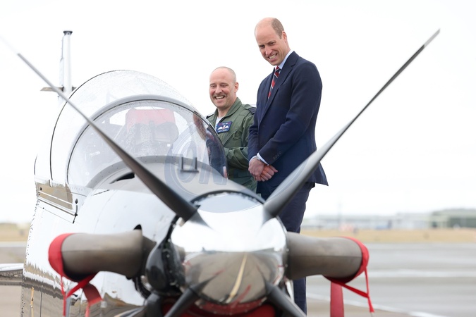 HOLYHEAD, UNITED KINGDOM - JULY 09: Prince William, Prince of Wales gets an introduction to a RAF Short Tucano trainer aircraft during an official visit at RAF Valley on July 09, 2024 in Holyhead, United Kingdom. The Price of Wales spent three years stationed at RAF Valley whilst serving as an RAF Search and Rescue pilot between 2010 and 2013., Credit:Chris Jackson / Avalon