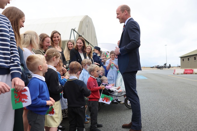 HOLYHEAD, UNITED KINGDOM - JULY 09: Prince William, Prince of Wales talks to members of the public during an official visit at RAF Valley on July 09, 2024 in Holyhead, United Kingdom. The Price of Wales spent three years stationed at RAF Valley whilst serving as an RAF Search and Rescue pilot between 2010 and 2013., Credit:Chris Jackson / Avalon