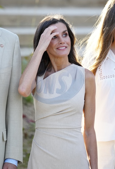 la reine Letizia d'Espagne arrivant à l'hôtel Melia Lloret de Mar pour une réception en l'honneur des lauréats du prix Princesse de Gérone (Princess of Girona awards) le 9 juillet 2024. King Felipe VI , Queen Letizia, Crown Princess Leonor and Princess Sofia receive previous Princess of Girona awards winners at the Melia Lloret de Mar Hotel. Lloret del Mar, Girona - July 9, 2024