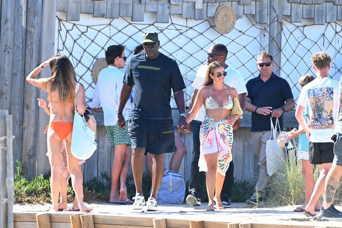 Exclusif - No Web - Michael Jordan et sa femme Yvette Prieto sont allés déjeuner dans un restaurant à Saint-Tropez le 9 juillet 2024. Exclusive - For Germany call for price - No Web - Michael Jordan and his wife Yvette Prieto went to lunch at a restaurant in Saint-Tropez on July 9, 2024.