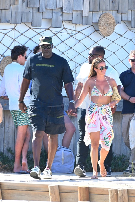 Exclusif - No Web - Michael Jordan et sa femme Yvette Prieto sont allés déjeuner dans un restaurant à Saint-Tropez le 9 juillet 2024. Exclusive - For Germany call for price - No Web - Michael Jordan and his wife Yvette Prieto went to lunch at a restaurant in Saint-Tropez on July 9, 2024.