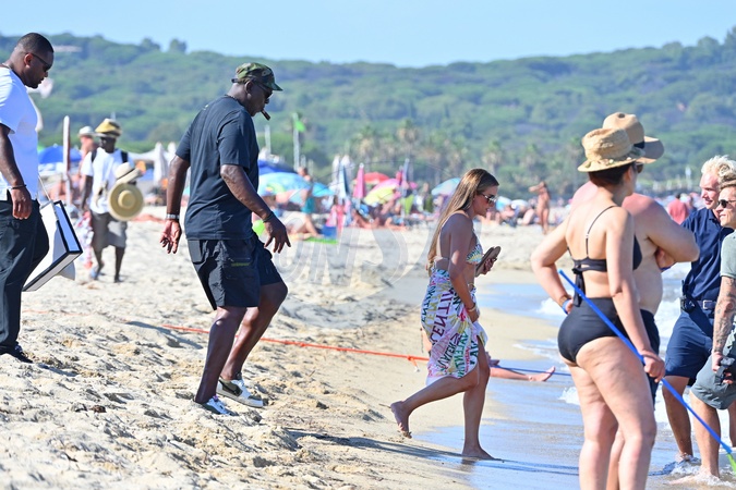 Exclusif - No Web - Michael Jordan et sa femme Yvette Prieto sont allés déjeuner dans un restaurant à Saint-Tropez le 9 juillet 2024. Exclusive - For Germany call for price - No Web - Michael Jordan and his wife Yvette Prieto went to lunch at a restaurant in Saint-Tropez on July 9, 2024.
