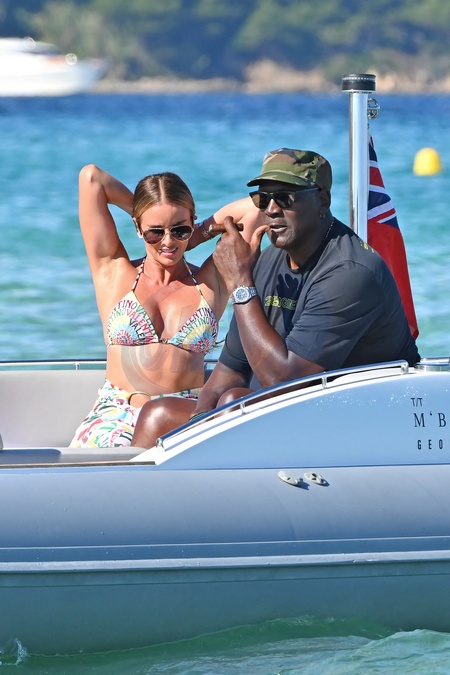 Exclusif - No Web - Michael Jordan et sa femme Yvette Prieto sont allés déjeuner dans un restaurant à Saint-Tropez le 9 juillet 2024. Exclusive - For Germany call for price - No Web - Michael Jordan and his wife Yvette Prieto went to lunch at a restaurant in Saint-Tropez on July 9, 2024.