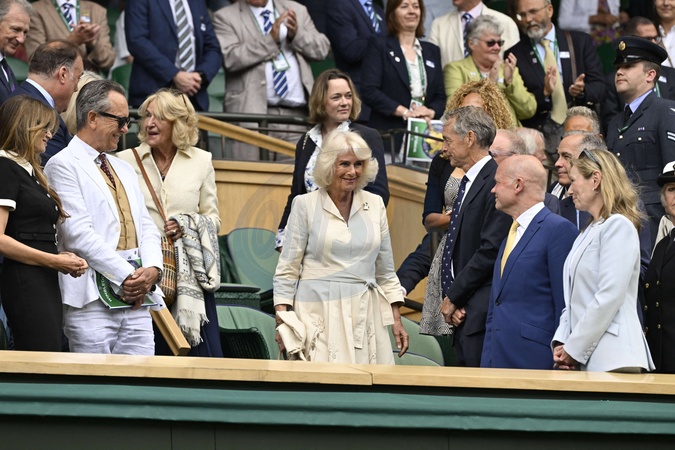 Krolowa Camilla Parker Bowles, królowa Anglii, na trybunach turnieju Wimbledon w Londynie