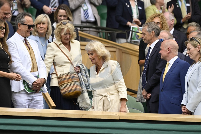 Krolowa Camilla Parker Bowles, królowa Anglii, na trybunach turnieju Wimbledon w Londynie