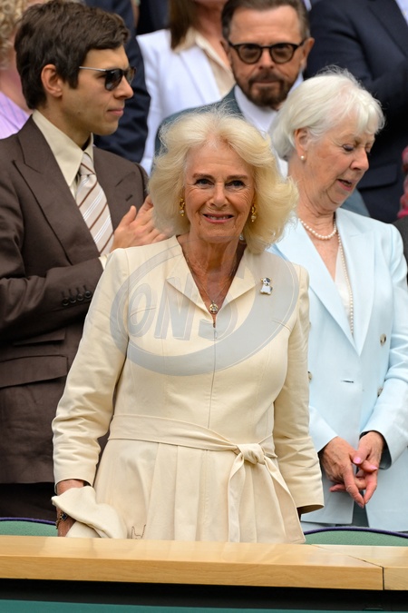 Krolowa Camilla Parker Bowles, królowa Anglii, na trybunach turnieju Wimbledon w Londynie
