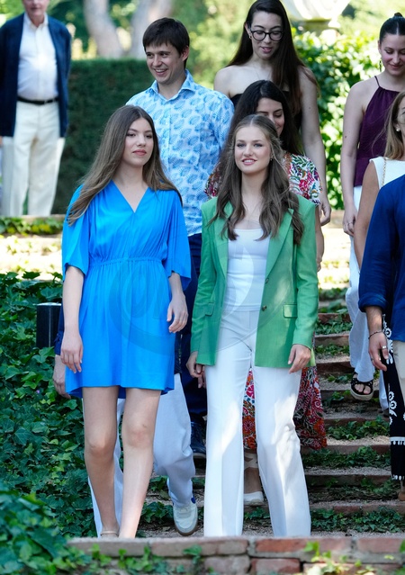 Księżna koronna Leonor i infantka Sofia podczas spotkania z młodzieżą z programów Fundacji Księżnej Girony w Ogrodach Św. Klotyldy w Lloret de Mar.