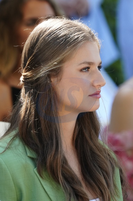Crown Princess Leonor (La princesse Leonor) and Princess Sofia (L'infante Sofia d'Espagne) attend a Meeting with Young members of the FPDGI programmes in occasion of the Princess of Asturias Awards events in Lloret del Mar, Girona, Spain, on July 10, 2024. © Lalo Yasky/Bestimage