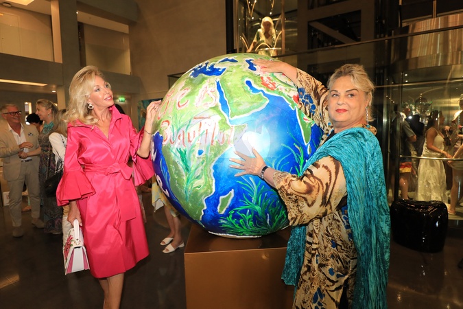 Exclusif - La princesse Camilla de Bourbon des Deux-Siciles avec l'artiste Paola Buratto Caovilla lors de l'inauguration de la sculpture "No more Time, Ocean are life" dans le hall de l'Hôtel de Paris Saint-Tropez le 10 juillet 2024. © Franz Chavaroche / Bestimage Exclusive - No web en Suisse / Belgique The inauguration of the sculpture "No more Time, Ocean are life" in the lobby of the Hôtel de Paris Saint-Tropez on 10 July 2024.