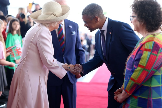 CARDIFF, WALES - JULY 11: King Charles III and Queen Camilla are greeted bĂ˝ First Minister of Wales Vaughan Gething and Llywydd of the Senedd Elin Jones upon their arrival at the Senedd on July 11, 2024 in Cardiff, Wales. Their Majesties The King and Queen visit the Senedd on the occasion of its twenty-fifth anniversary., Credit:Chris Jackson / Avalon
