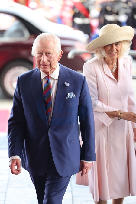 CARDIFF, WALES - JULY 11: King Charles III and Queen Camilla arrive at the Senedd on July 11, 2024 in Cardiff, Wales. Their Majesties The King and Queen visit the Senedd on the occasion of its twenty-fifth anniversary., Credit:Chris Jackson / Avalon