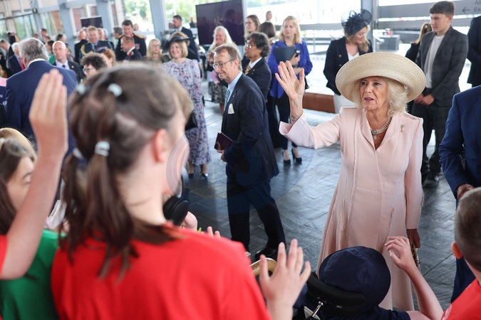 CARDIFF, WALES - JULY 11: Queen Camilla meets members ofthe community before she and King Charles III depart after a visit to the Senedd on July 11, 2024 in Cardiff, Wales. Their Majesties The King and Queen visit the Senedd on the occasion of its twenty-fifth anniversary., Credit:Chris Jackson / Avalon