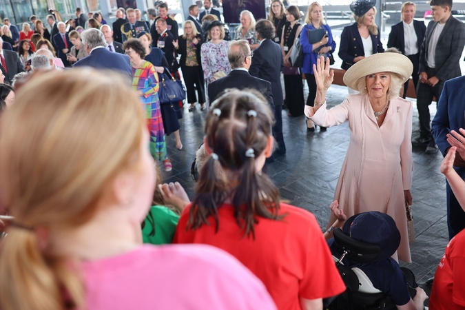 CARDIFF, WALES - JULY 11: Queen Camilla meets members ofthe community before she and King Charles III depart after a visit to the Senedd on July 11, 2024 in Cardiff, Wales. Their Majesties The King and Queen visit the Senedd on the occasion of its twenty-fifth anniversary., Credit:Chris Jackson / Avalon