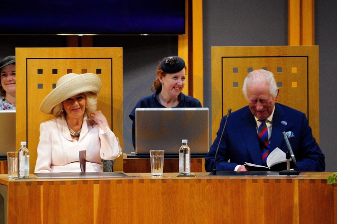 King Charles III and Queen Camilla during a visit to the Senedd in Cardiff to mark its 25th anniversary., Credit:Ben Birchall / Avalon
