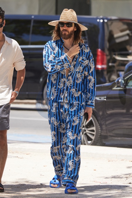 Jared Leto se balade sur le port de Saint-Tropez, Côte d'Azur, France, le 11 juillet 2024. Jared Leto walks around the harbor in Saint-Tropez, French Riviera, France, July 11, 2024.