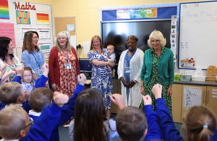 Britain's Queen Camilla attends the 200th anniversary celebrations of Lacock Primary School