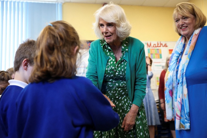 Britain's Queen Camilla attends the 200th anniversary celebrations of Lacock Primary School