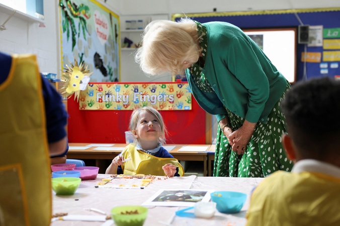 Britain's Queen Camilla attends the 200th anniversary celebrations of Lacock Primary School
