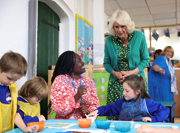 Britain's Queen Camilla attends the 200th anniversary celebrations of Lacock Primary School