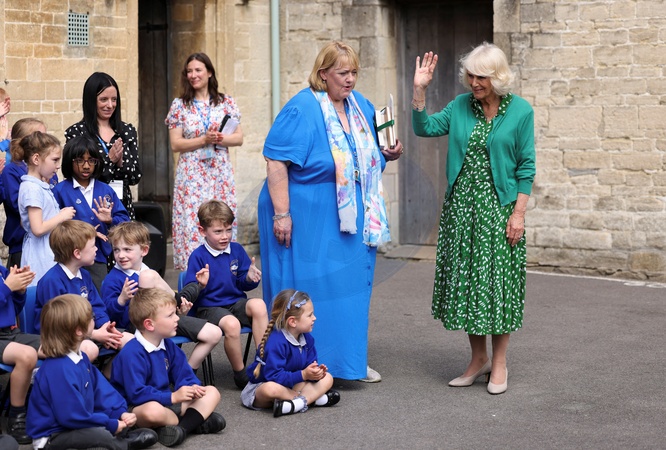 Britain's Queen Camilla attends the 200th anniversary celebrations of Lacock Primary School