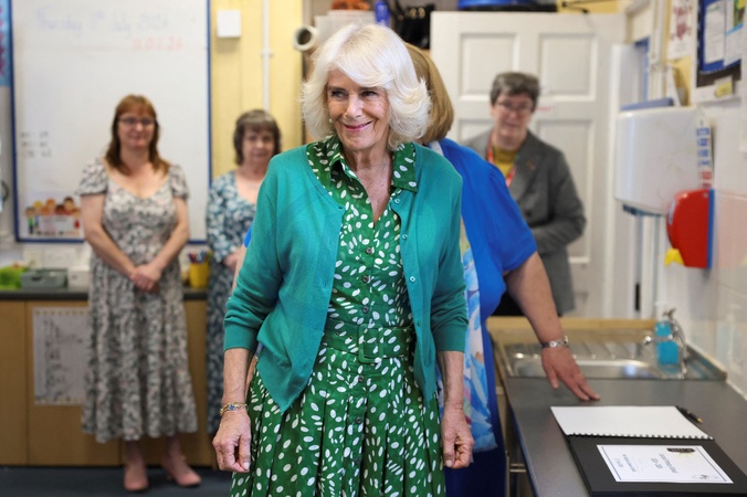 Britain's Queen Camilla attends the 200th anniversary celebrations of Lacock Primary School