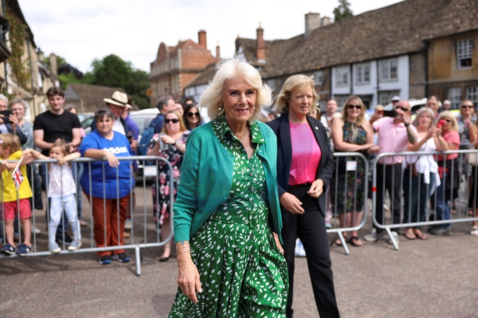 Britain's Queen Camilla leaves after greeting members of the public, during her visit for the 200th anniversary celebrations of Lacock Primary School in Lacock, Britain, July 11, 2024., Credit:Hollie Adams / Avalon