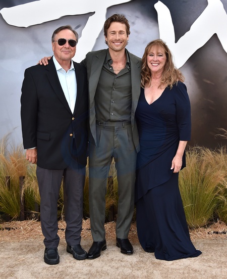 Glen Powell Sr., Glen Powell and Cyndy Powell arriving to the Los Angeles premiere of "Twisters” held at the Regency Village Theatre on July 11, 2024 in Westwood, Ca.© Lisa OConnor/AFF-USA.com