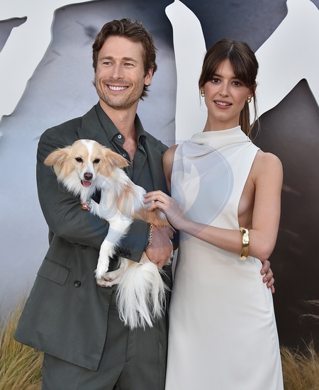 Glen Powell, Daisy Edgar-Jones and Brisket arriving to the Los Angeles premiere of "Twisters” held at the Regency Village Theatre on July 11, 2024 in Westwood, Ca.© Lisa OConnor/AFF-USA.com