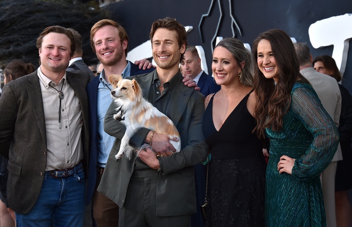 Glen Powell and Family arriving to the Los Angeles premiere of "Twisters” held at the Regency Village Theatre on July 11, 2024 in Westwood, Ca.© Lisa OConnor/AFF-USA.com