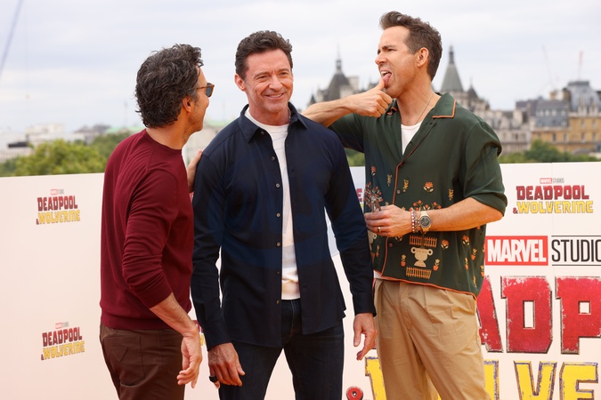 Ryan Reynolds, Shawn Levy and Hugh Jackman at the Deadpool & Wolverine UK Photocall held at at The Savoy London in London, UK, on 12th July, 2024, Credit:James Shaw / Avalon