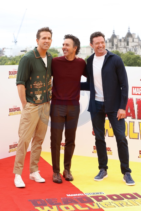 Ryan Reynolds, Shawn Levy and Hugh Jackman at the Deadpool & Wolverine UK Photocall held at at The Savoy London in London, UK, on 12th July, 2024, Credit:James Shaw / Avalon
