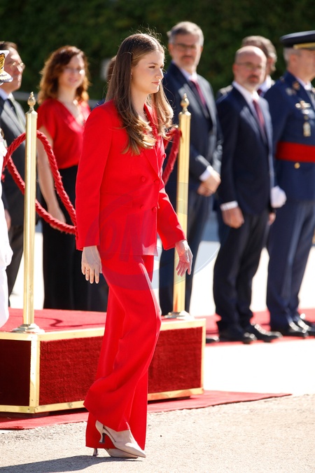 La princesse Leonor s'est envolée de l'aéroport Adolfo Suárez Madrid-Barajos pour Lisbonne où elle effectuera sa première visite officielle en solo, à Madrid, Espagne, le 12 juillet 2024. © Yasky Lalo/Bestimage Crown Princess Leonor, Official farewell at Adolfo Suárez Madrid-Barajos Airport ahead of the official visit of the Spanish Crown Princess to Portugal in Madrid, Spain, July 12, 2024.