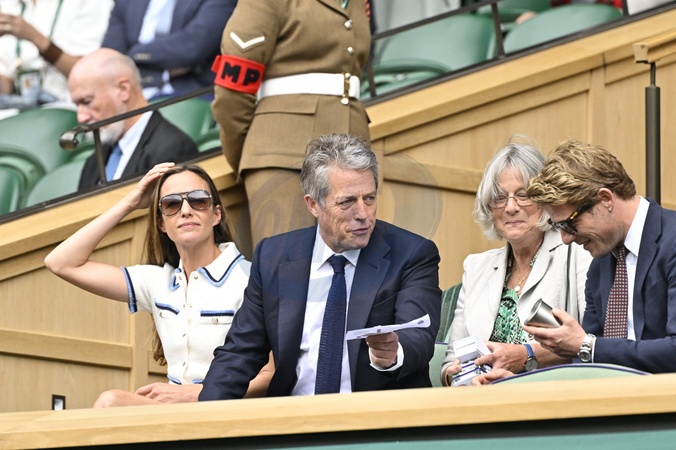 Hugh Grant and his wife Anna Elisabet Eberstein in the stands during the day twelve of the Wimbledon Tennis Championships at the All England Lawn Tennis and Croquet Club on July 11, 2024 in London, England. © Chryslene Caillaud/Panoramic/Bestimage