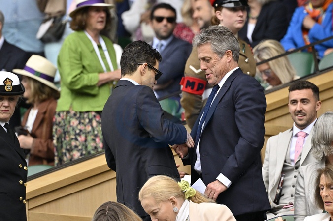 Hugh Grant and his wife Anna Elisabet Eberstein in the stands during the day twelve of the Wimbledon Tennis Championships at the All England Lawn Tennis and Croquet Club on July 11, 2024 in London, England. © Chryslene Caillaud/Panoramic/Bestimage