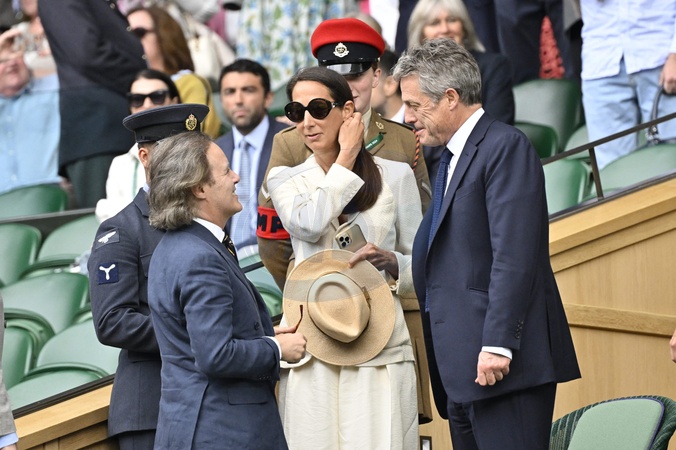 Hugh Grant z zoną Anna Elisabet Eberstein Gwiazdy na trybunach turnieju Wimbledon w Londynie