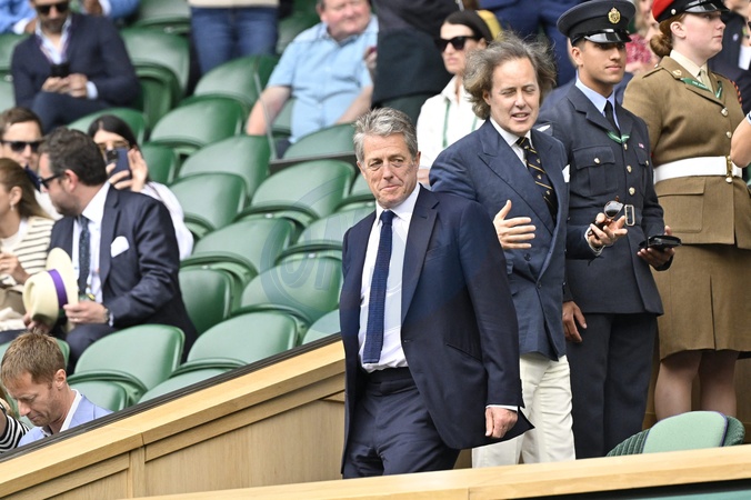 Hugh Grant and his wife Anna Elisabet Eberstein in the stands during the day twelve of the Wimbledon Tennis Championships at the All England Lawn Tennis and Croquet Club on July 11, 2024 in London, England. © Chryslene Caillaud/Panoramic/Bestimage
