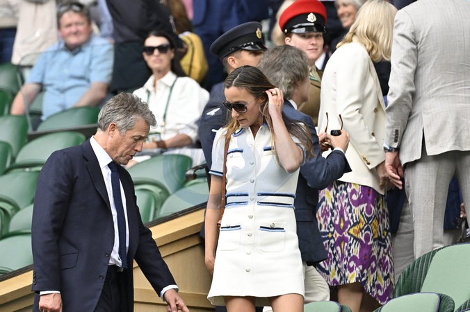 Hugh Grant z zoną Anna Elisabet Eberstein Gwiazdy na trybunach turnieju Wimbledon w Londynie