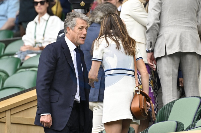 Hugh Grant z zoną Anna Elisabet Eberstein Gwiazdy na trybunach turnieju Wimbledon w Londynie