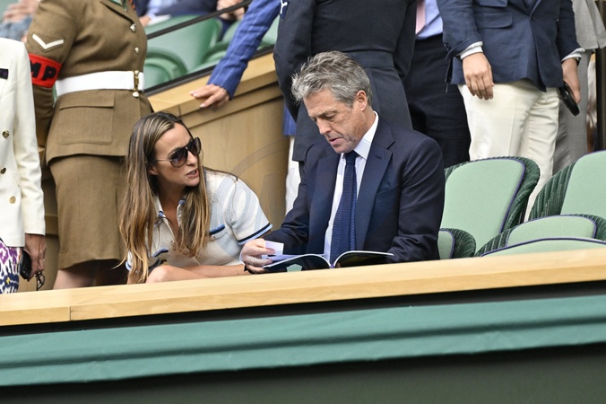 Hugh Grant z zoną Anna Elisabet Eberstein Gwiazdy na trybunach turnieju Wimbledon w Londynie