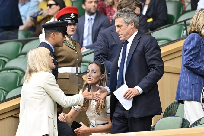 Hugh Grant z zoną Anna Elisabet Eberstein Gwiazdy na trybunach turnieju Wimbledon w Londynie
