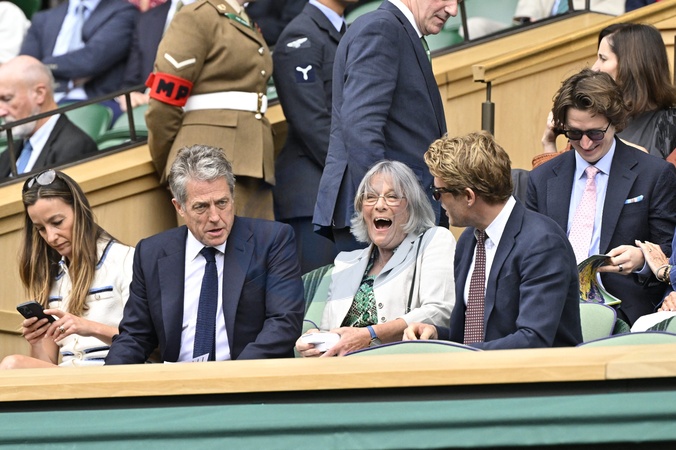 Hugh Grant z zoną Anna Elisabet Eberstein Gwiazdy na trybunach turnieju Wimbledon w Londynie
